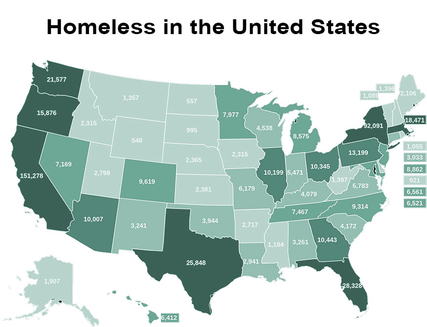 The first chart shows the states where homeless live in the United States.